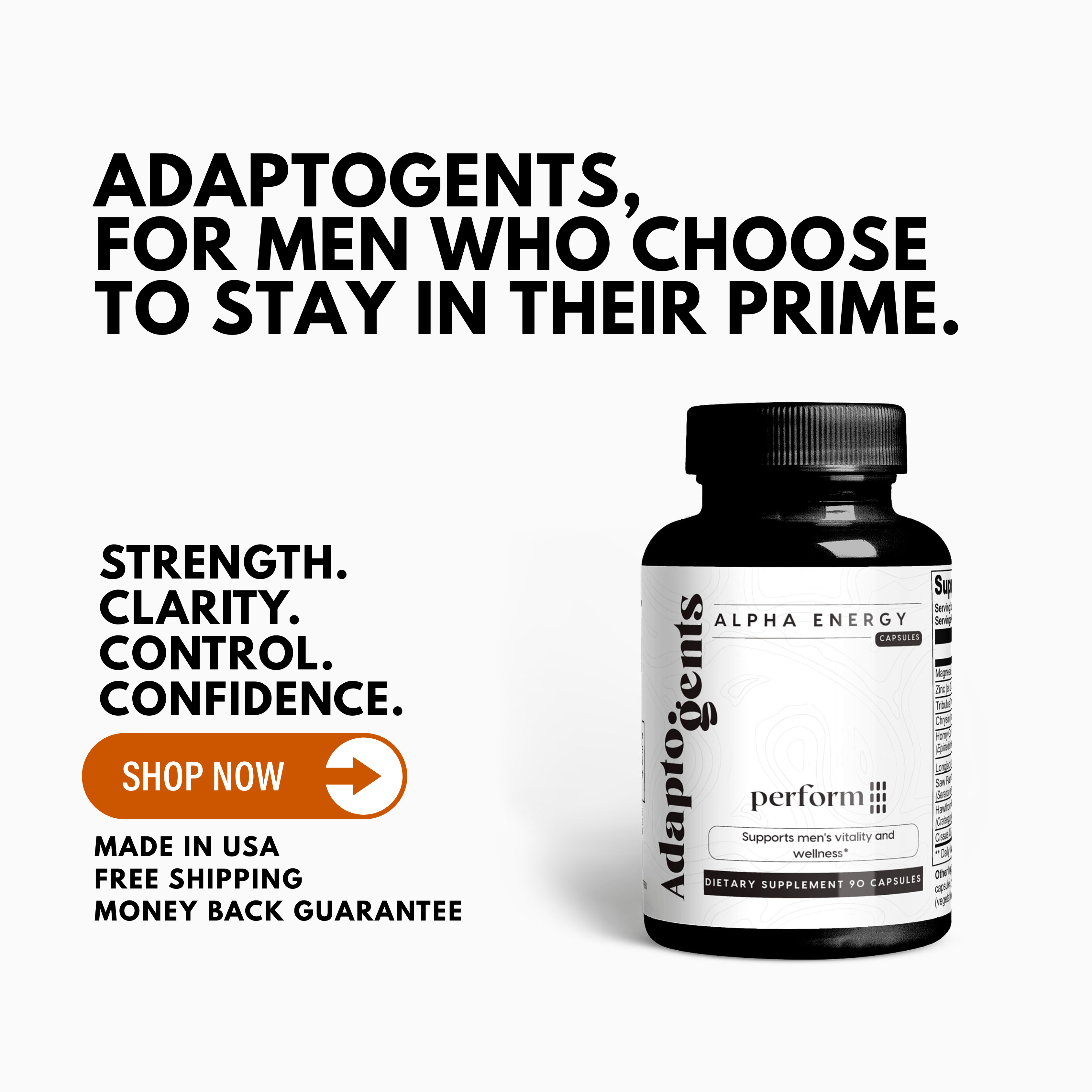 Discover the challenges men face after 40 and how Adaptogents’ Alpha Mind, Alpha Energy, and Male Vitality help maintain energy, focus, and overall wellness.